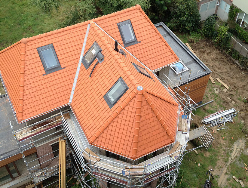 Wij leggen dakpannen in alle mogelijke materialen en kleuren. Op alle soorten daken, maar even goed ook op gevels. Er zijn heel veel verschillende soorten dakpannen of leien. Bij ons hebt u een ruime keuze. Wij helpen u in de keuze, zowel in kleur, als materiaal. Leien en dakpannen zijn een stevige en duurzame dakbekleding. Ze zijn geschikt voor complexe vormen en mogelijk op ieder dak en gevel.